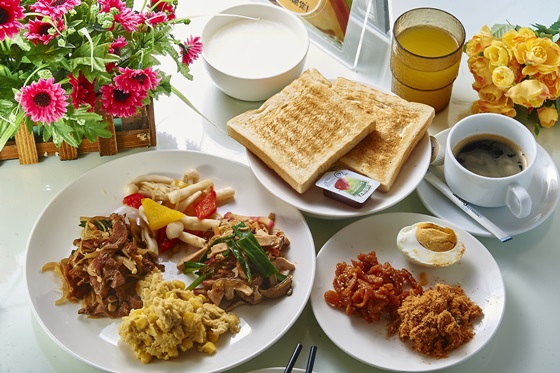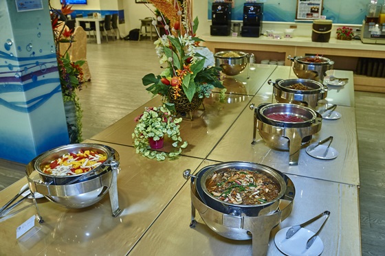 進餐廳的入口處,彷彿海底世界的隧道般新奇,採自助式的中西式餐點,讓一整天活力滿點!