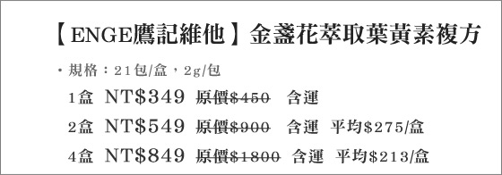 ![]() 卡路里無繩跳繩器 售價:250 我要購買 卡路里無繩跳繩器-包包裡藏著瘦身武器!無繩跳繩器更有效消耗卡路里,沒有線體牽絆好收納,室內室外都可用!運動減重的好選擇平均每入最低只要250元起(含運)即可購得卡路里無繩跳繩器1入/2入/4入,顏色: | ![]() CLINIQUE 倩碧-全效眼霜/勻淨科研淡斑精華 歐美專櫃保養品牌,清新水嫩肌的美麗秘密,全效眼霜、勻淨科研淡斑精華優惠組合! 售價:800 我要購買 CLINIQUE 倩碧-全效眼霜/勻淨科研淡斑精華-歐美專櫃保養品牌,清新水嫩肌的美麗秘密,全效眼霜、勻淨科研淡斑精華優惠組合!CLINIQUE 倩碧 全效眼霜/勻淨科研淡斑精華 | ![]() 台塑生醫-舒暢益生菌 售價:599 我要購買 台塑生醫-舒暢益生菌-為身體做環保!九種複合益生菌、三種順暢營養素、三包埋防護技術,三效合一,通暢每日好心情!平均每盒最低只要599元起(含運)即可購得【台塑生醫】舒暢益生菌1盒/2盒(4gx30包/ |